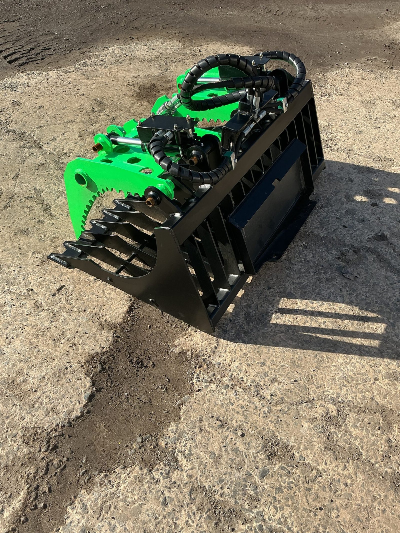 46-inch grapple bucket with 3-inch spacing and Dingo mount. Rugged design for debris and material management.