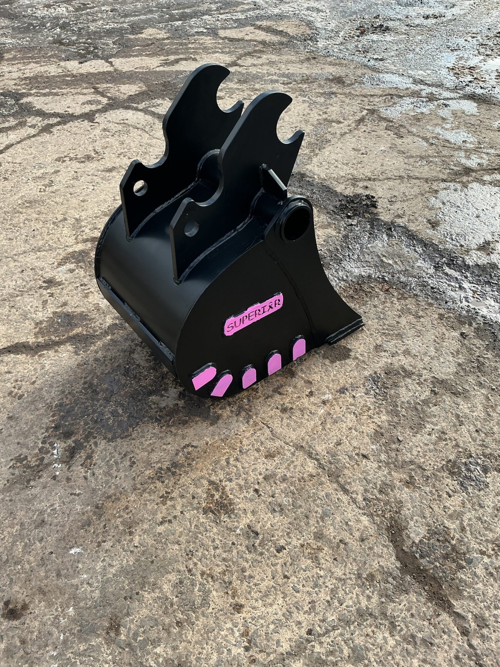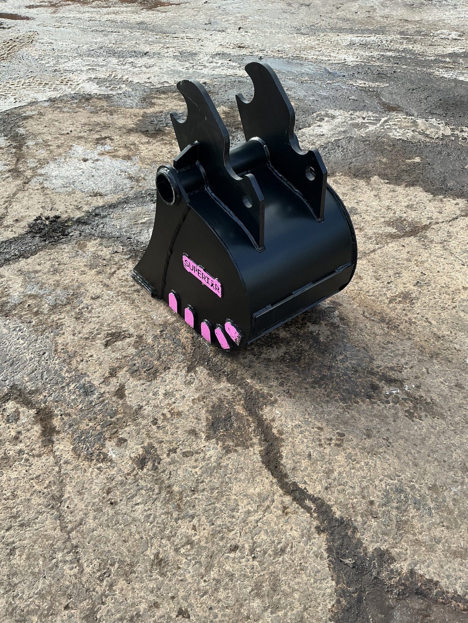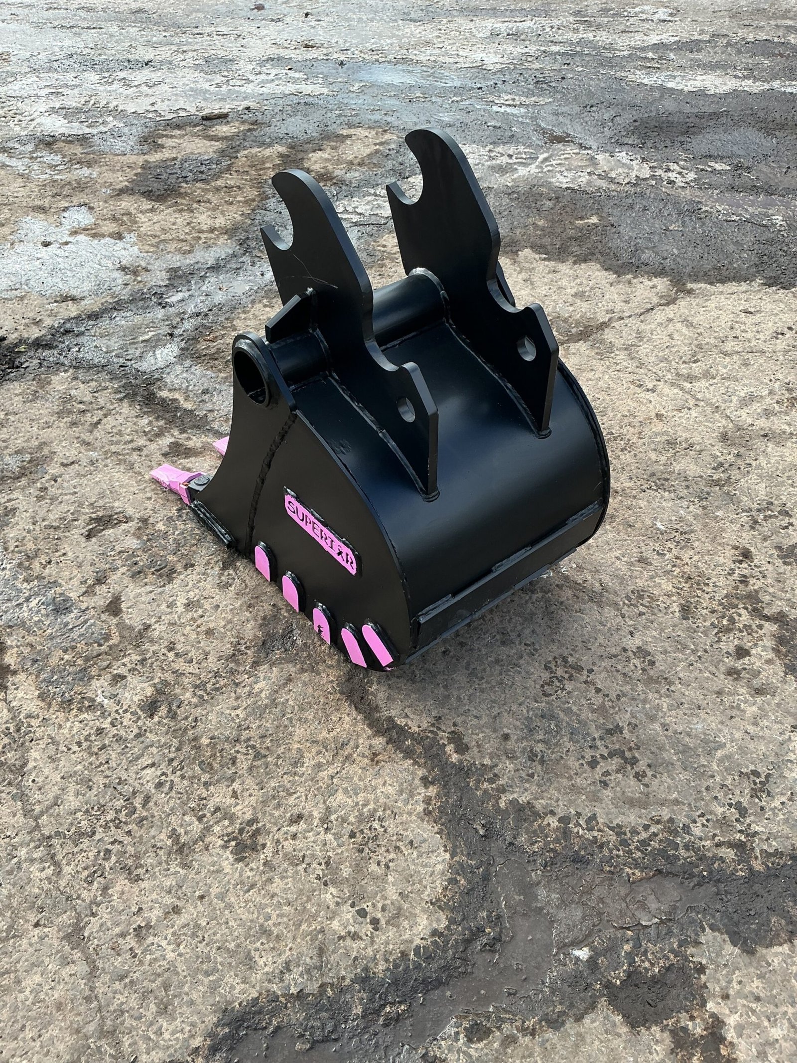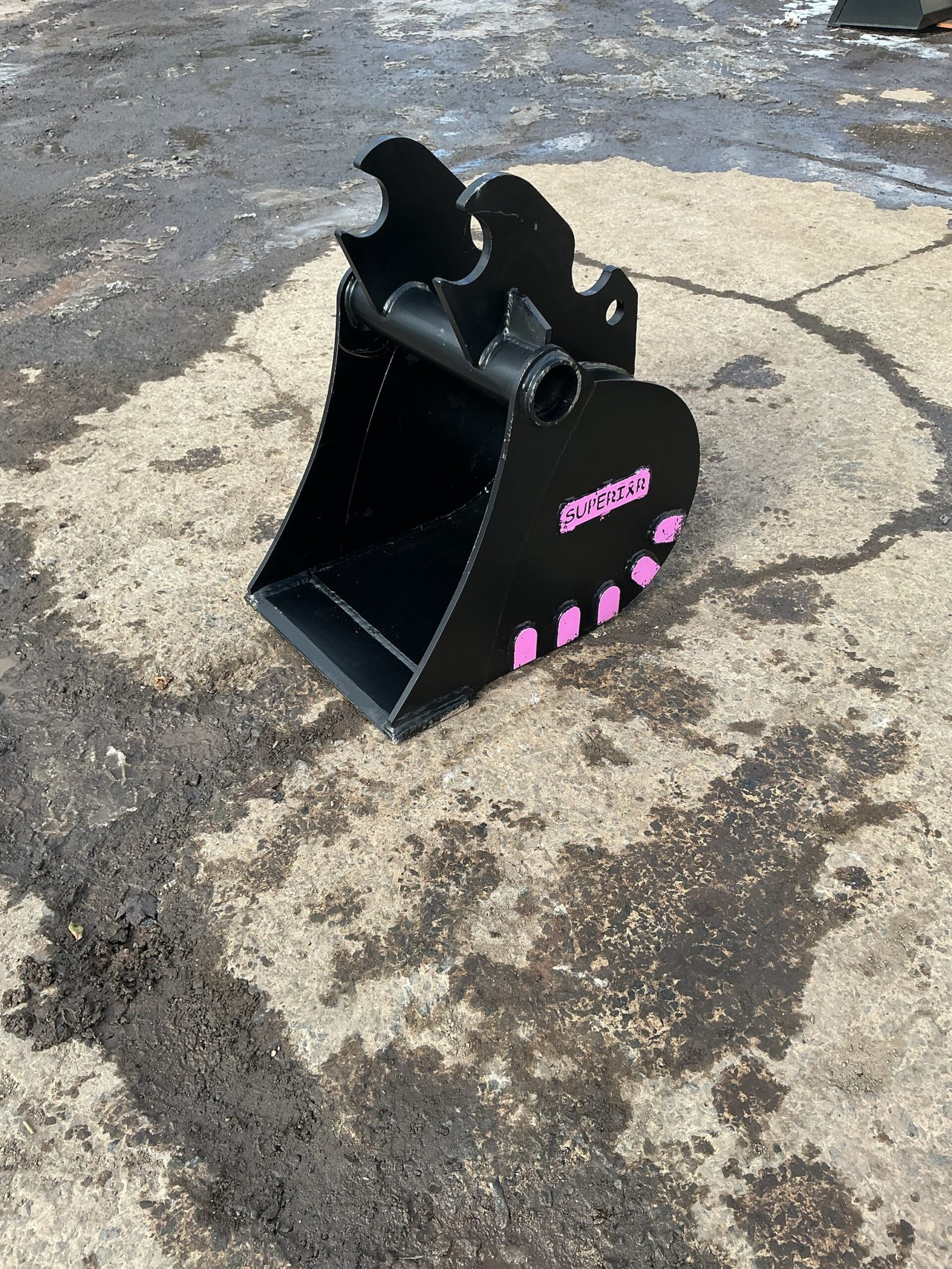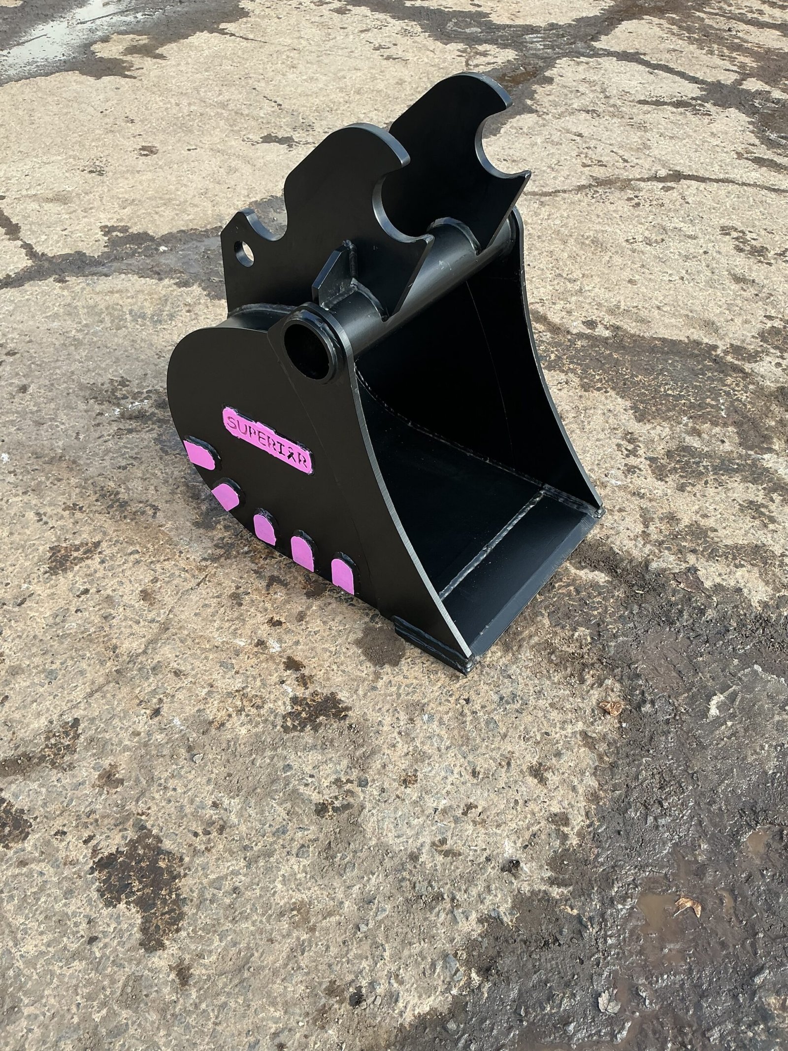 18-inch trenching bucket for Kubota KX057. Narrow profile designed for precision digging in utilities, footings, and drainage projects.