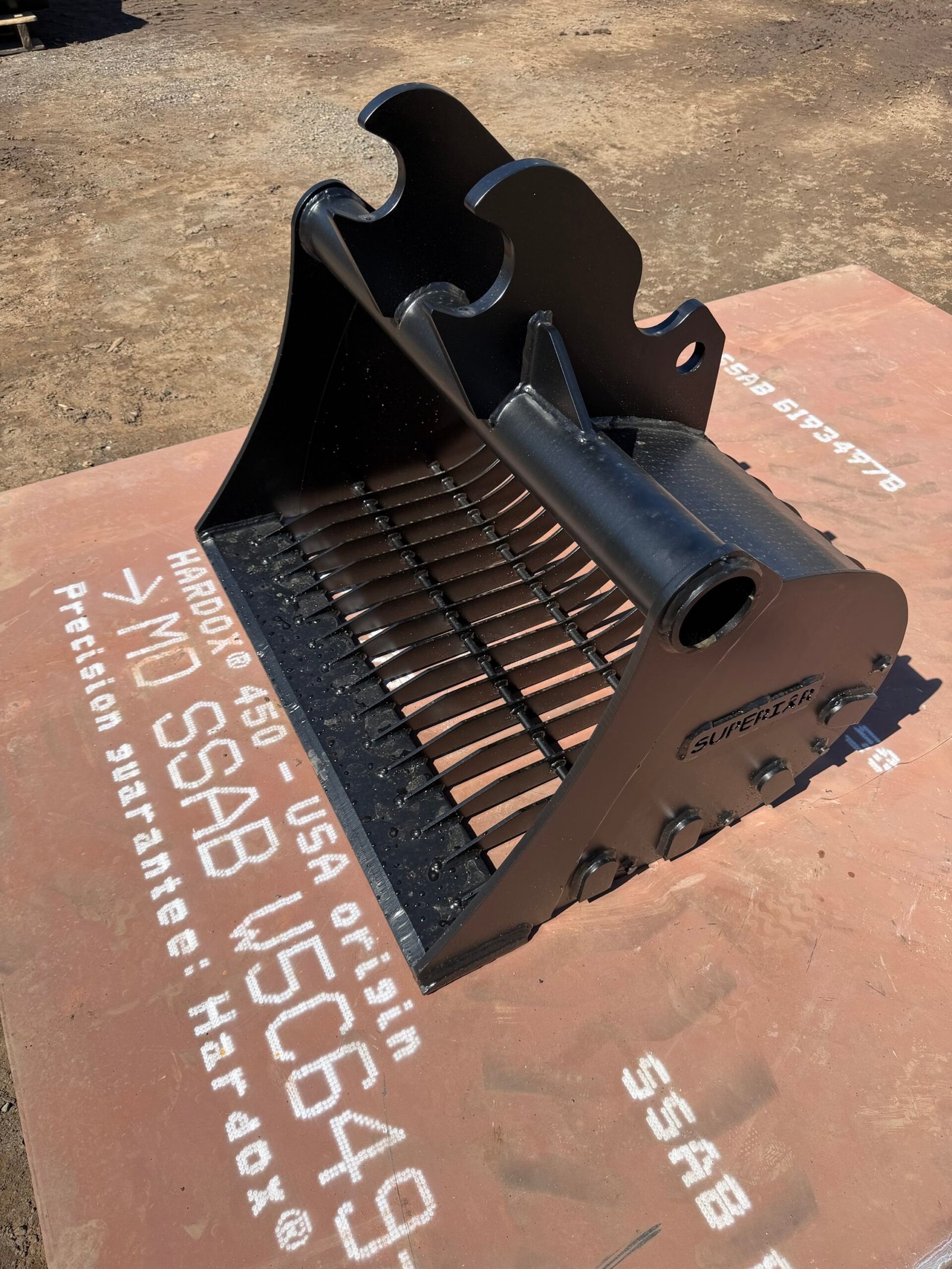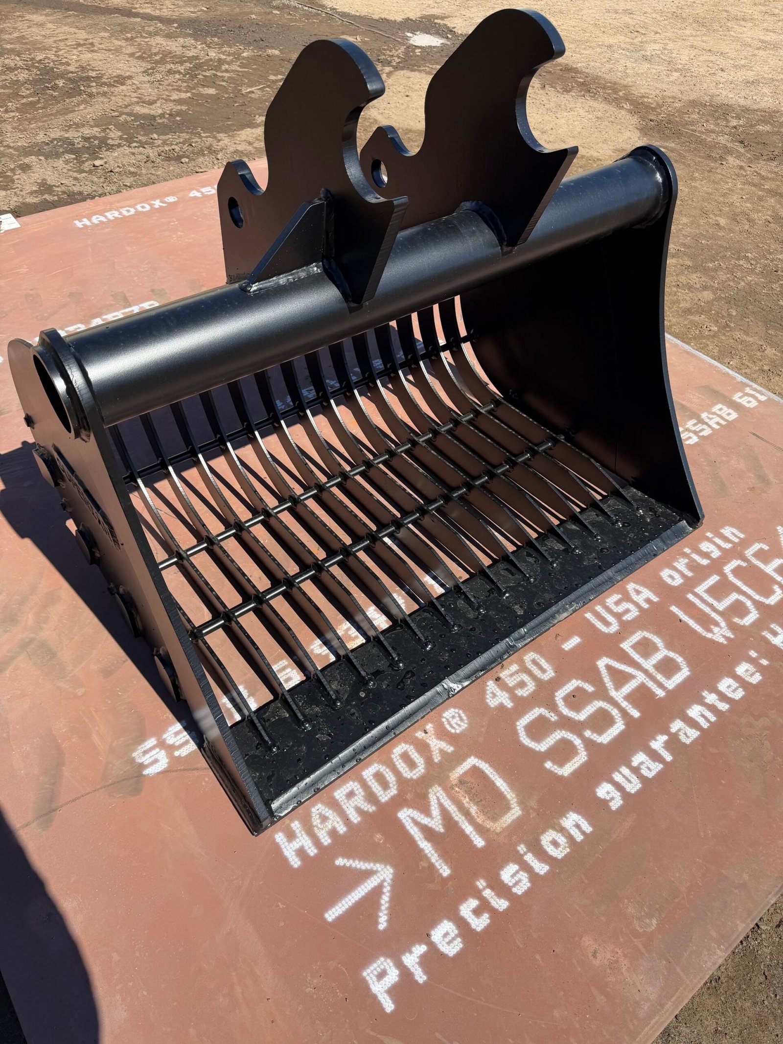 Built with Hardox® steel, this excavator rock bucket is made for serious work and long-term durability. It is the perfect sifting bucket for excavator use, equipped with an ESCO V-Series tooth system, which is stronger, longer-lasting, and more reliable than most OEM tooth setups.